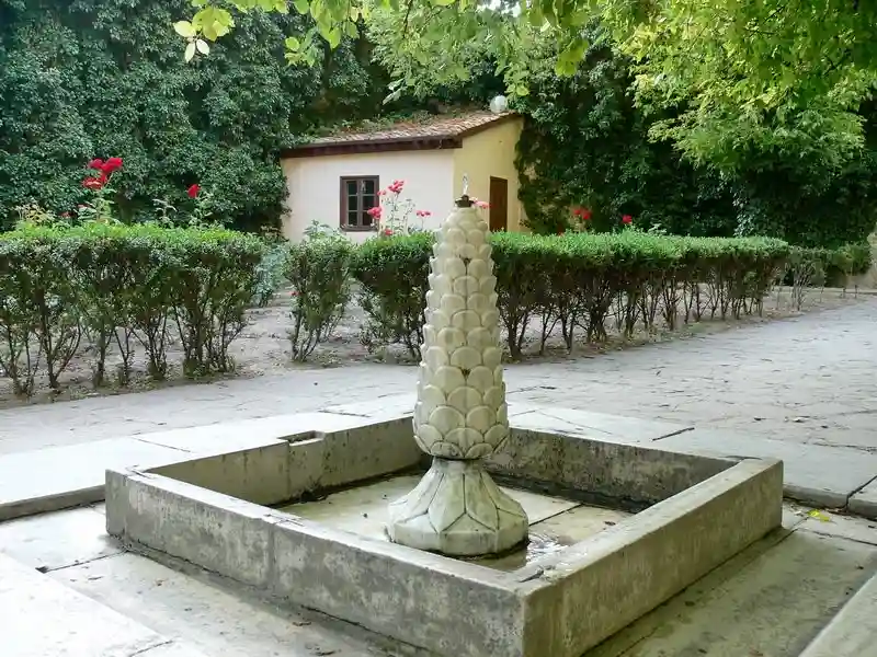В посольском дворике разбит сад, засаженный кустами самшита и тополями. Также здесь установлены два фонтана: один из них расположен по центру, второй из резного камня у здания.