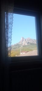 Вид из окон: во двор на клумбы/сад или горы.