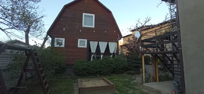 Рядом с домом детская площадка: качели, песочница, горка, очень удобно приглядывать за детками с веранды дома.