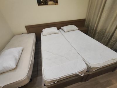 - Первое впечатление было подпорчено: заселились вечером, а номер не готов: нет туалетных принадлежностей, полотенец, постель не заправлена. В итоге в течение часа всё это приносили нам, а мы уставшие с дороги сидели в ожидании мыла и полотенца, чтобы банально помыть руки, я уж не говорю, как мне хотелось принять душ и лечь на кровать. В остальном соответствует номер описанию. Бассейн хоть и с подогревом, но подогрев не включали, вода прохладная была, но всё же купались, терпимо. Обед на троих в их столовой 2600 р.: первое + второе + компот. К сожалению, выбор в их столовой ограничен, не хватает салатов и десертов. Готовят вкусно, но всё же ценник завышен в сравнении со столовой на набережной или в других отелях побережья. После мы поехали в Алушту и в грузинском ресторане на троих за обед отдали 1800 р. Завтрак включён, но кто приходил последним, к сожалению, не хватило кружек для чая, стояли ждали, когда помоют и принесут.
