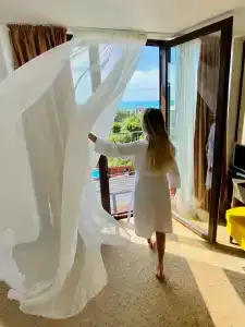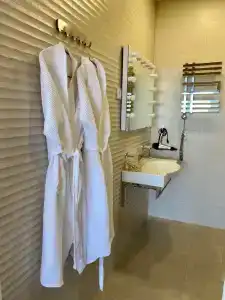 - До пляжа нужно прогуляться 8 минут. Это немного, если есть по дороге мороженое, но можете поискать отели поближе к пляжу ▶.