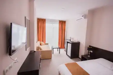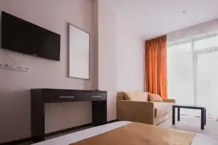 Выезд до 12:00На территории отеля: кафе, бар, парковка (за доп.плату), услуги прачки (за доп.плату), сервис в номер (за доп.плату), экскурсии (за доп.плату), бар (за доп.плату), кальян (за доп.плату), бассейн, шезлонги возле бассейна