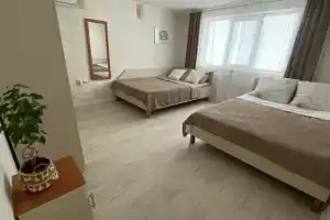 Номер двухкомнатный для большой семьи, вход отдельный. Выход во внутренний двор с детской площадкой.... Летняя кухня во дворе со всем необходимым. Пляж галечно-песочный на расстоянии 200 метров. Продуктовые магазины в радиусе 200 м