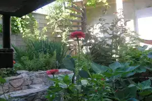 Большой двор, дубовый стол, мангал, небольшой водопад, качель. До спуска к морю 30 шагов. Хороший бетонный спуск с перилами, пляж чистый, песок с галькой мелкой. Еще...