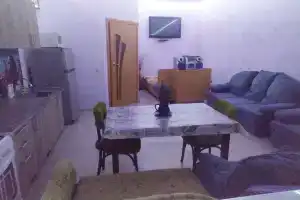 - Полностью оборудованная кухня-гостиная - плита, холодильник, микроволновка, чайник, необходимая посуда.