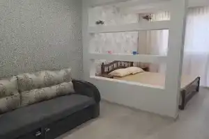 Спальня с двуспальной кроватью 160х200 и раскладным креслом 90х200, кухня-гостиная с двуспальным диваном 150х200. Раздельный санузел с ванной.