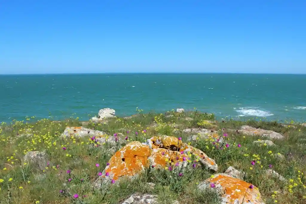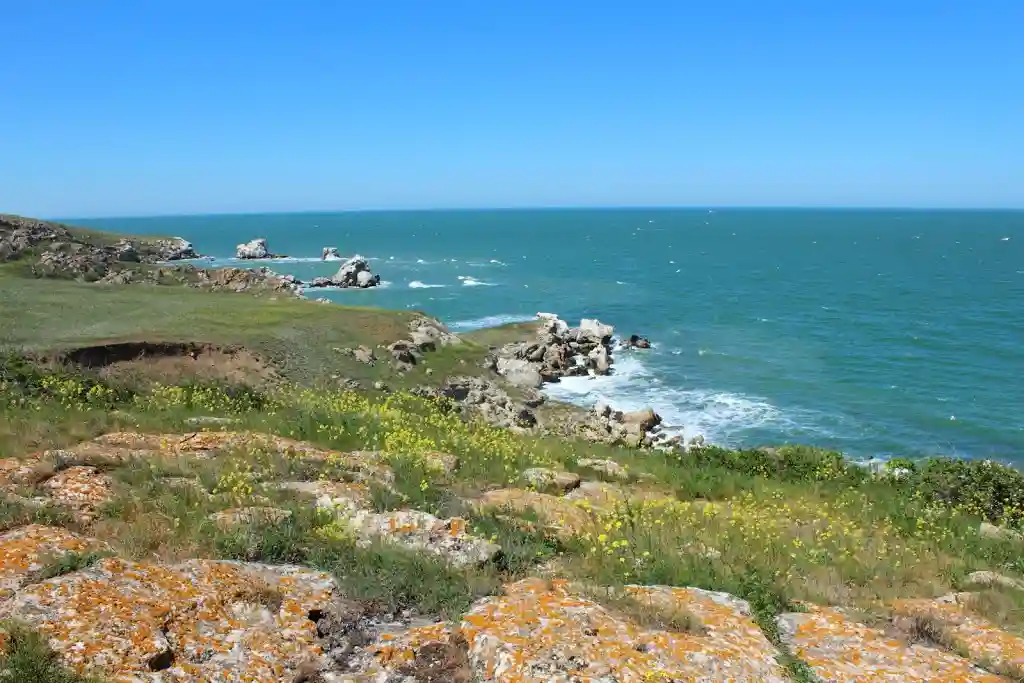 Практически весь мыс покрыт степями, обрывающимися к морю известняковыми скалами. Памятник природы, государственный Казантипский природный заповедник с 1998.