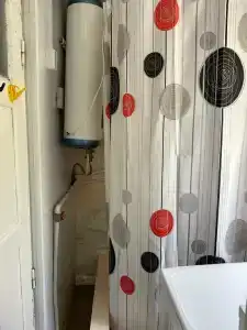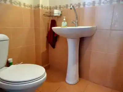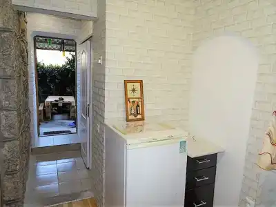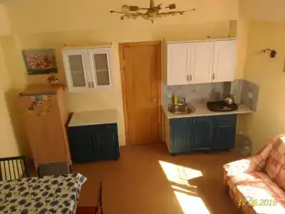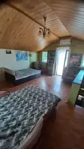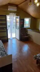 Домик рассчитан на 2 человека, есть все удобства для вашего отдыха: большая 2-спальная кровать, вентилятор, Wi-Fi, телевизор, небольшая кухня, холодильник, кухонные принадлежности, чайник, плитка, утюг, фен, просторная душевая.