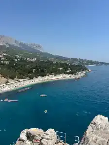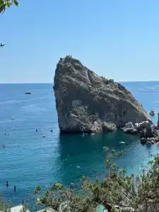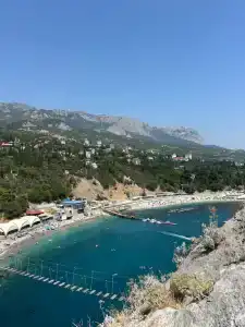Местный пляж (Башмак-Нарышкинские камни) всего в 3-х минутах пешком от дома, на машине меньше минуты, рядом есть детские площадки, столовые, парк «Кипарисовая аллея», центральный пляж (гора Кошка и скала Дива) находится в 10 минутах от дома пешком и 3 минуты на машине. До аквапарка «Симеиз» всего 10 минут на машине.