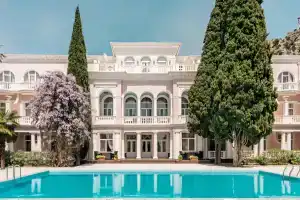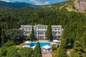 Отель «Усадьба Голубой Залив» расположен в Симеизе, закрытой территории под охраной, в заповедном... можжевеловом лесу Лименовой долины, на Южном побережье Крыма. Для размещения гостей отель «Усадьба Голубой Залив» предлагает 7 корпусов: историческую трехэтажную «Виллу Лимена» и 6 современных корпусов: «Вилла Мальцева», «Вилла Шипилова», «Вилла Филибера», «Вилла Панеа», «Вилла Шулейкина» и «Вилла Рахманинова». Номерной фонд представлен различными категориями от «Стандарт» до «Премиум Люкс Бизнес». В свободное время постояльцы могут воспользоваться оборудованной спортивной площадкой и тренажерами, проведя его активно и с пользой. Для детей предоставляется просторная игровая комната с игрушками и настольными играми. Оплата принимается наличным и безналичным расчетом. Гости могут позавтракать на территории объекта в атмосферных ресторанах, в которых подаются блюда разных кухонь. Столы сервируются в панорамном ресторане и на террасах. Возможна доставка блюд и продуктов в номер. Ресторан «Филибер» работает на ежедневной основе с 13:00 до 23:00. Ресторан комплексного питания «Ганский» работает на ежедневной основе с 8:00 до 20:00. Имеются два просторных конференц-зала, которые подойдут для проведения деловых мероприятий, конференций или семинаров. Для отдыхающих в летний период работают два подогреваемых уличных бассейна с соленой водой (большой и малый), а также круглогодичный закрытый бассейн с родниковой водой. Летом можно добраться на трансфере до пляжа в расположенном поблизости посёлке. Новый СПА-комплекс отеля предлагает своим гостям: -бассейн с гидромассажными сидениями и зоной отдыха с шезлонгами; -2 хаммама (на 6 и на 2 чел); -травяная, финская и инфракрасная сауны; -душ впечатлений; -дорожка Кнейпа; -ванна для гидромассажа ног; -теплый каменный островок; -соляная комната. -Для гостей отеля посещение СПА-комплекса входит в стоимость проживания. Еще...