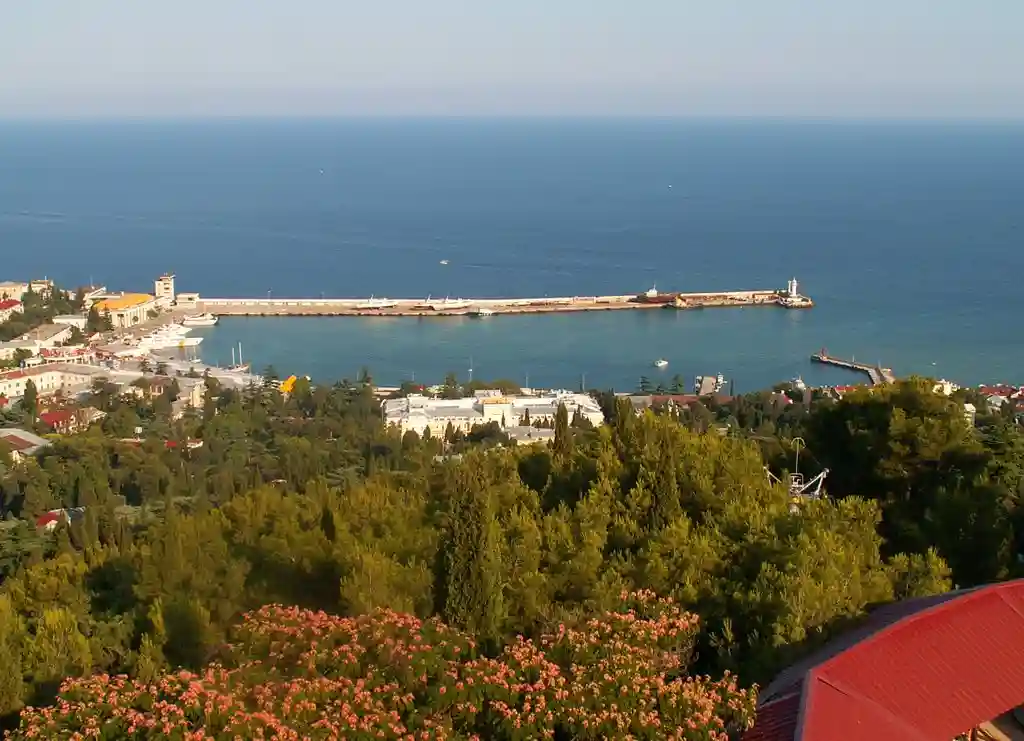 Если стать лицом к морю, то хорошо видно, что Ялта расположилась на трёх холмах — с левой стороны — Поликуровский холм, с правой — Чайная гора, а в самом центре и находится холм Дарсан, внизу перед которым — морской порт.
