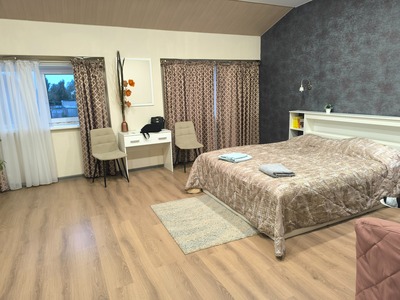 + Удобное бесконтактное заселение. Большой просторный номер, теплый, есть все необходимое. На общей кухонной зоне есть чайник, посуда, стиральная машина, холодильник. Останавливался на одну ночь - все понравилось🙌05.10.2025Суточно