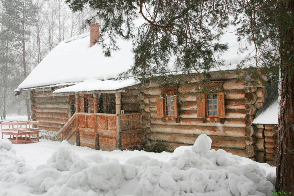- Крестьянская изба Кокориных из деревни Выхино Люберецкого района Московской Области. Реконструирована архитектором Д. Я. Статчевским на время ее постройки 30–40 годы XIX века. В избе открыта выставка предметов крестьянского быта. Экспонаты, представленные в избе и сенях, воспроизводят деревенский интерьер того времени. Деревянная часовня, воссозданная по обмерам и фотографиям постройки XVIII века, украшает поляну перед воротами усадьбы.