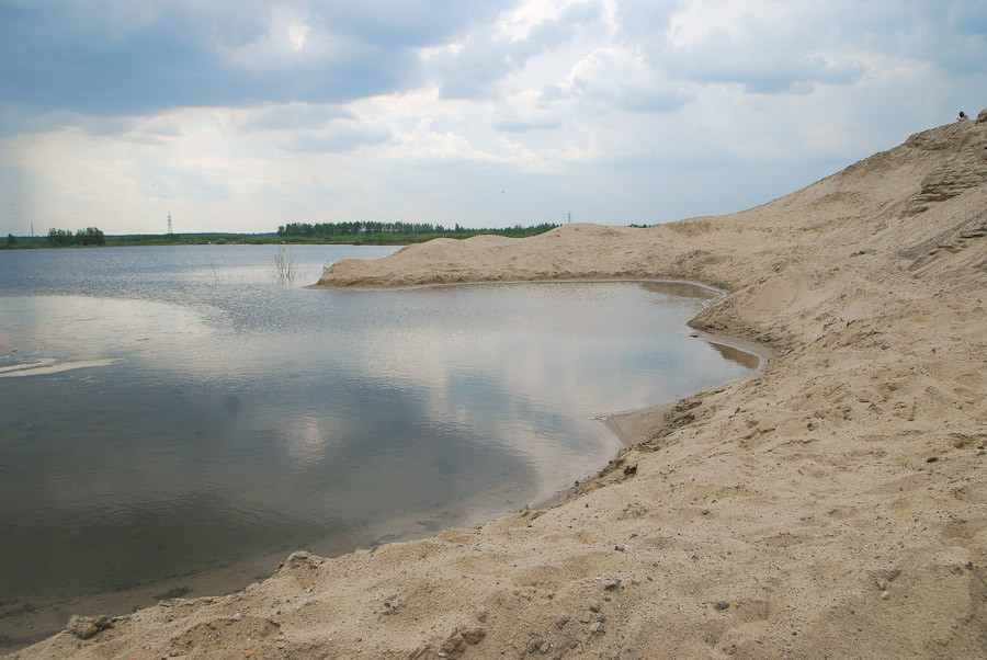 Действующий песчаный карьер, где водятся раки. Разработки ведутся на северном берегу. Обслуга живет на восточном. Очень интересны "зыбучие пески" - там, где сепараторы намывают горы.