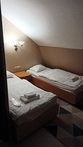 - Звукоизоляция отсутствует. Двери в номер - как межкомнатные, без порогов. Соответственно и всё что происходит в коридоре и на лестнице слышно очень хорошо. А в коридоре рядом с номером ещё и микроволновка, к которой весь этаж утром ходит что-то разогреть. Плюс разборки управляющей с персоналом в коридоре с утра пораньше выспаться перед дорогой не дали. Парковка за шлагбаумом, вдоль подъездной дороги. Но шлагбаум никакой безопасности не обещает. Сколько оставлял машину в Москве ночью около жилья, было нормально, а тут какой- то урод оставил на двери отпечаток ноги и вмятину.