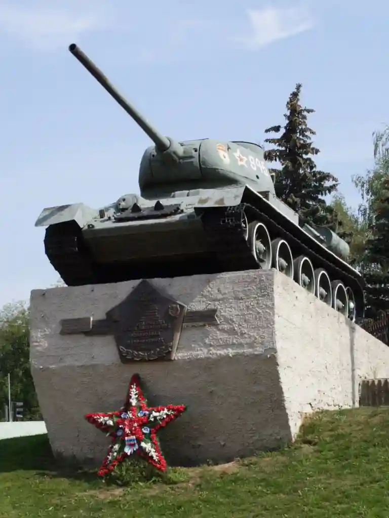 28 октября 1941 тяжёлый танк КВ-1 под управлением лейтенанта Г. Г. Хетагурова совершил разведку в городе. На большой скорости танк пересёк реку, разделяющую город на две части. Первые выстрелы танка были направлены по дому, рядом с которым скопились немецкие машины и солдаты. Затем, выехав на центральную улицу, КВ навёл пушку на немецкий штаб и «несколькими выстрелами разбил его в щепки». Также танк раздавил несколько вражеских пушек, замаскированных стогами сена. На обратной дороге танк был подожжён, но это не помешало экипажу вернуться на свою территорию. В городе, недалеко от моста, через который Г. Г. Хетагуров пересекал реку, на постаменте установлен памятник — танк Т-34-85, с надписью на борту 945.