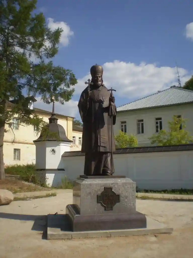 Церковь монастыря представляет внутри вид горы, на которой находится престол во имя Преображения Господня, а внизу, как бы в пещере, церковь воскресшего праведного Лазаря. Здесь сохраняется деревянный гроб, в коем был первоначально похоронен преп. Сергий. Богомольцы грызут гроб, так как по поверью это исцеляет зубную боль.