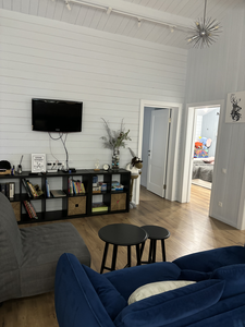 Спать на диване в кухне-гостиной не разрешается. По запросу предоставляем: детский стульчик для кормления, ванночка для купания, манеж для ребенка, пеленальный столик, радионяня для самых маленьких гостей и вентилятор.