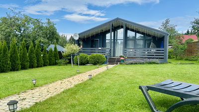 Дом мечты с панорамными окнами расположен на огороженной территории с парковкой на 2 авто. В доме: