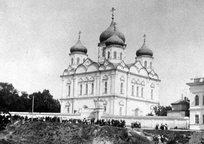 К концу XIX века представлял собой обширный комплекс построек, включавший в себя административные, жилые и хозяйственные корпуса и пять действовавших храмов: Троицкий собор (1879), Успенскую церковь (1693), придельную с ней церковь Рождества Иоанна Предтечи (1700), Троицкую церковь-усыпальницу (1845) и домовую при архиерейском корпусе Благовещенскую церковь (1824). На кладбище монастыря были похоронены герой Отечественной войны 1812 г. генерал-лейтенант, барон Ф. К. Корф (1773 или 74-1823), писатель и театральный деятель, граф Г. И. Чернышев (1762—1831).