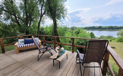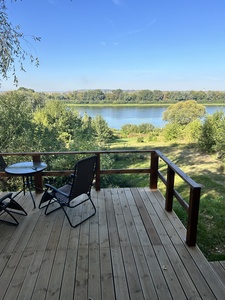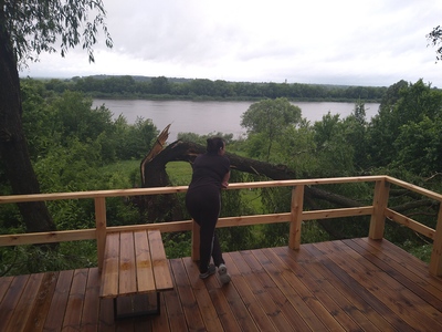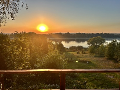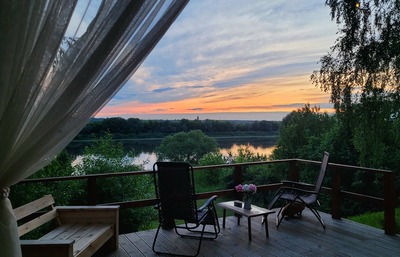 Деревянный дом с панорамными окнами в пол и двумя большими верандами, с видом на оку и заливные луга. Дом, где с террасы можно наблюдать яркие закаты над окой, внимать спокойному течению реки, смотреть на мерцающие звёзды. Для романтических моментов и семейного счастья.