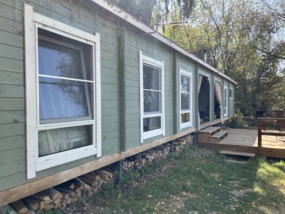 Дом новый деревянный, построен по индивидуальному дизайн-проекту, состоит из двух половин: северной и южной, разделенных широкой верандой. В каждой половине свой санузел, что удобно при размещении двух пар или родителей со взрослыми детьми.