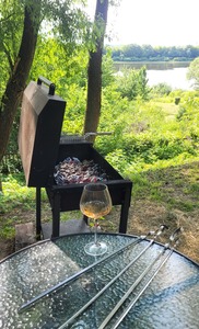 Около дома: вас ждет мангал с решеткой и шампурами. Уголь и розжиг привозите с собой.