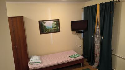 - Фото не соответствует реальности. Выбрали номер стандарт с холодильником, электрочайником и кондиционером. Ничего из перечисленного в номере не оказалось. Администратор пояснить ничего не может. Контактное лицо, указанное в объявлении, вышла на разговор по телефону один раз с утверждением, что разберётся в сложившейся ситуации. Вопрос не разрешила и на контакт не выходила. На телефонные звонки не отвечала. Администратор так же не смогла с ней связаться по телефону, поясняя, что телефон хозяйка отключила. Полное игнорирование. То есть оплатили мы за номер с удобствами, на которые расчитывали, а получили просто комнату с двухспальней кроватью. Даже зная, что гостей будет 2 человека(муж и жена), администратор дала только один комплект полотенец. Пришлось выпрашивать хотя бы одно полотенце. Ни кому не рекомендуем эту гостиницу.