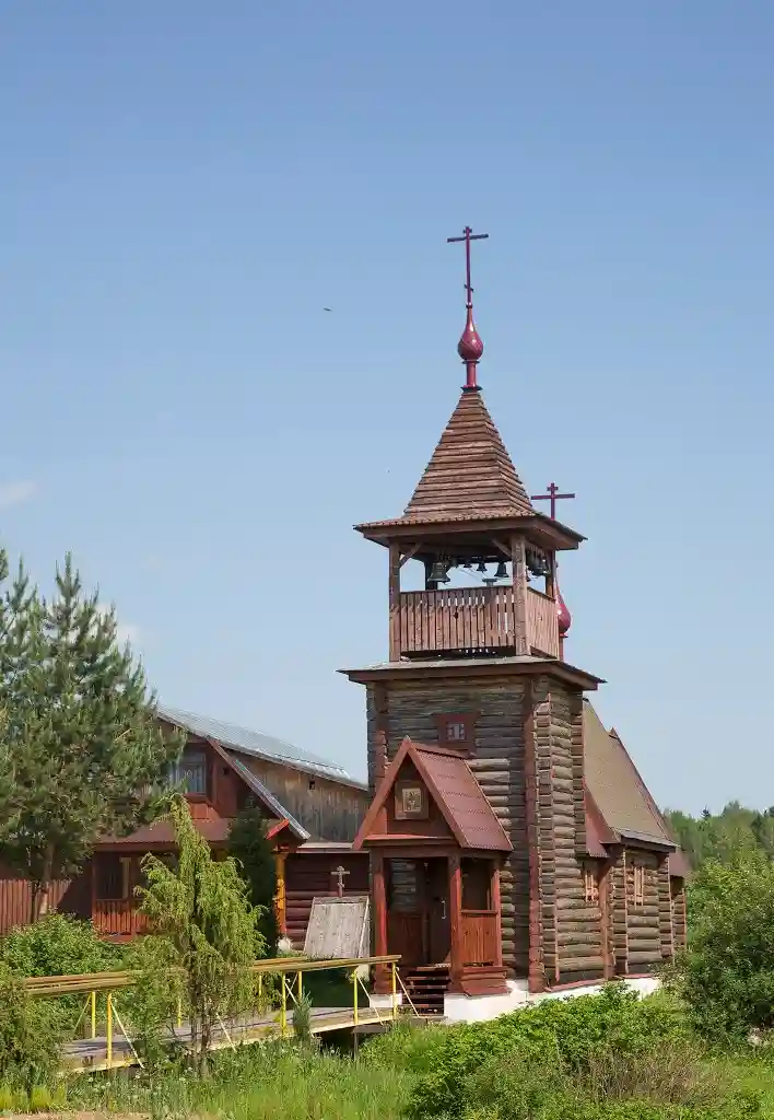 Деревянный храм в память о погибших здесь в октябре 1941 воинах.