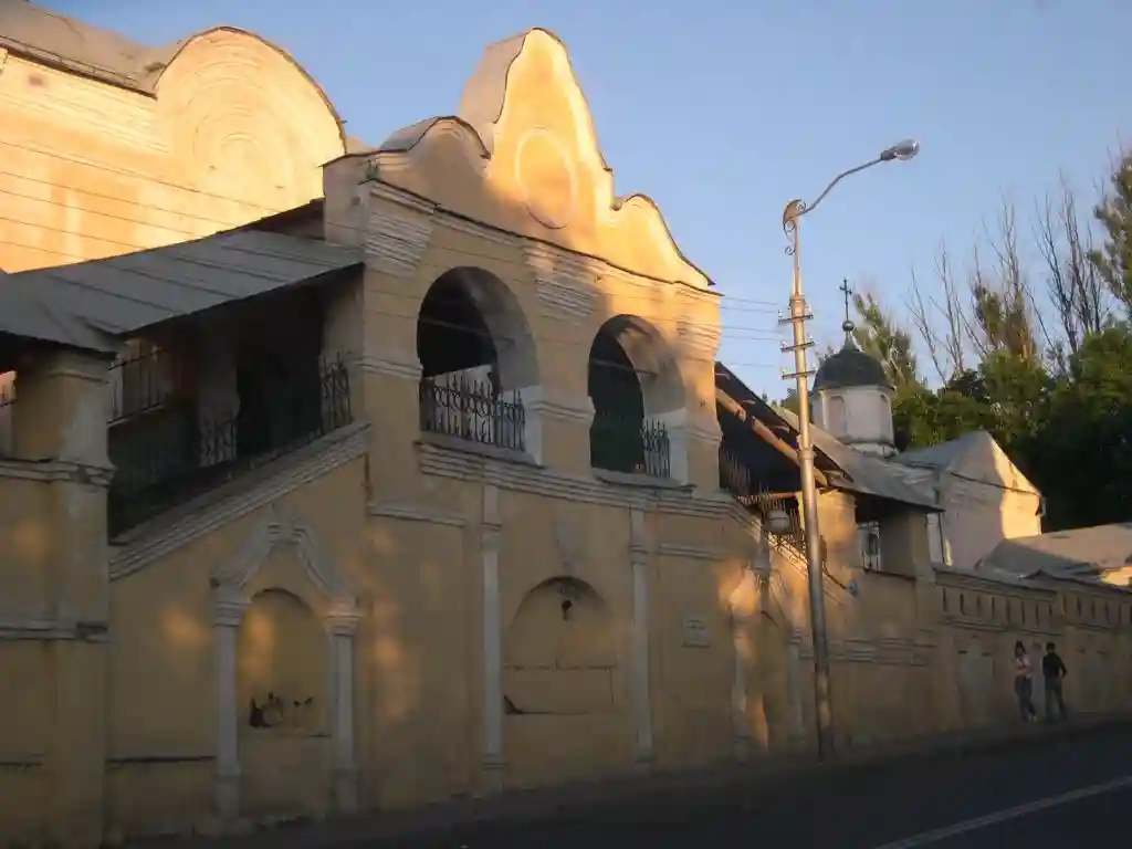 Широкий фриз переходит в полукруглые фронтоны. Помещения перекрыты сомкнутыми сводами.