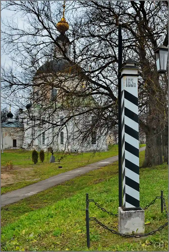 Верстовой столб: до Москвы 217 вёрст, до Смоленска 163 версты. Такие столбы стояли на всей Старой смоленской дороге. Во время войны с Наполеоном Вязьма сильно пострадала. 22 октября 1812 года генерал Милорадович освободил город и продолжил преследование французов до Дорогобужа.