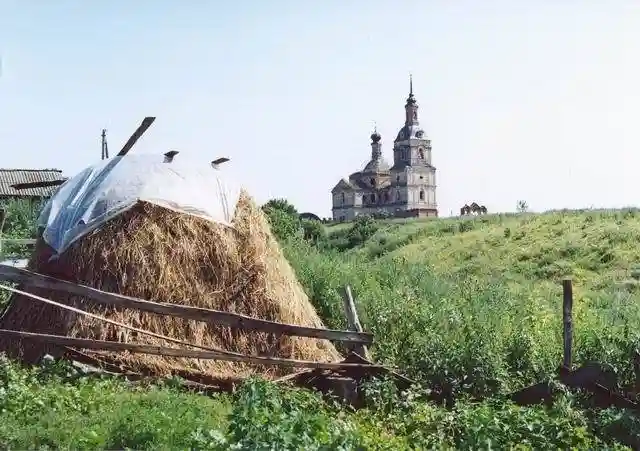 Деревянная Троицкая церковь существовала в селе с 1714 года. Спустя около 20 лет она была разобрана и на её месте, в 1735—1741 годах, на средства местного помещика Мефодия Кудрявцева, была построена каменная церковь того же посвящения. Новый, крестообразный в плане двухэтажный храм, в стиле нарышкинского барокко, имел четыре придела: главный Троицкий, на втором этаже и там же Сергия Радонежского. В нижнем этаже приделы во имя Архангела Михаила и Иоанна Богослова.
