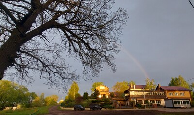 - В первый день нас встретила девушка с айкосом на рецепшене) Убираются так себе, на подоконнике дохлые комары, на потолке паутина. Мы жили два дня, в номере не убиралась, мусор не выносили. На сайте написано, что беседка, мангал и первая партия дров бесплатно. Сначала нам предложили купить уголь за тысячу, потом, после переговоров, принесли ламинированные доски на растопку, ну серьёзно? Горячая вода из бойлера, топят сильно, но на окнах нет гребёнки, проветривать неудобно. Интернет никакой, еле-еле, телевизор, соответственно, тоже лагает. Мобильный интернет (Билайн, Мегафон) не работает. Если все мелочи устранить (убраться, поставить гребенки на окна, развести интернет по зданию и т.д.), то будет все отлично.
