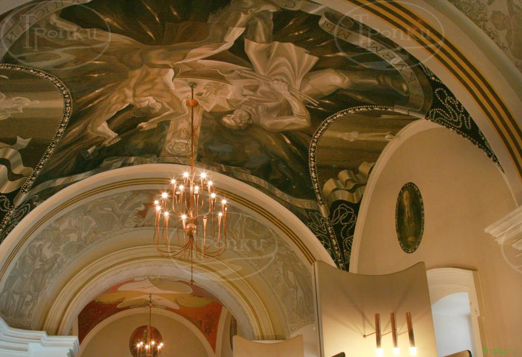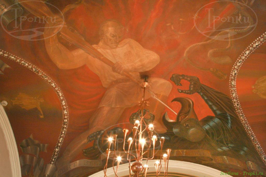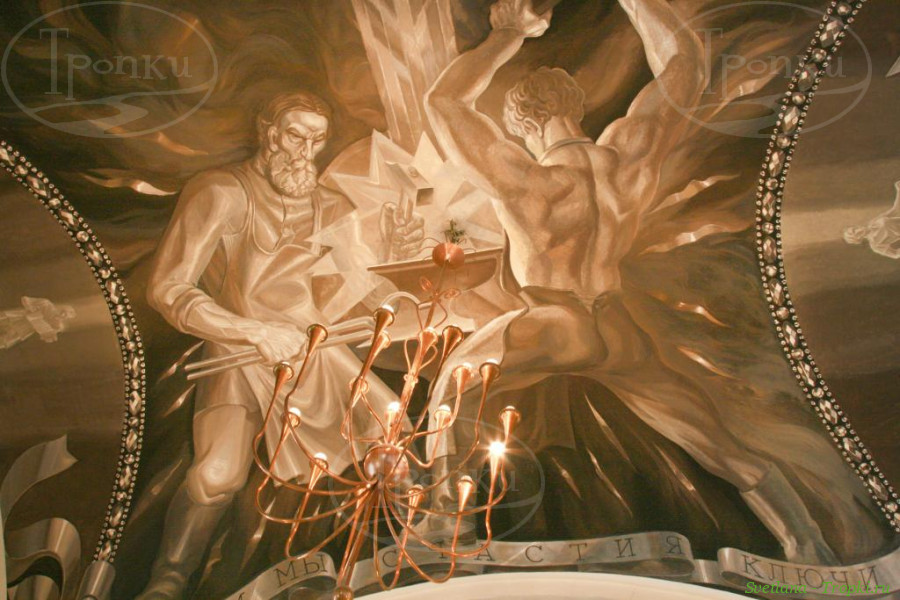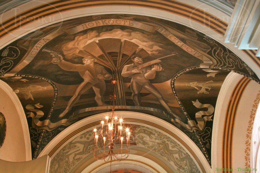 Росписи сводов выполнены в символикой Тульских оружейников советских времен: