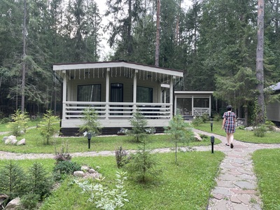 Наши домики расположены на огороженной территории в окружении соснового леса и рассчитаны для проживания до 4-х человек для тихого семейного отдыха.