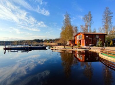 Для увлекательного отдыха большой компанией или семейного времяпровождения предлагаются комфортабельные домики, оборудованные всем необходимым для проживания. Уютное расположение дополняется великолепными пейзажами, ведь база отдыха располагается прям на березу озера Селигер. В домиках установлена мягкая мебель, столы и стулья, телевизор и кондиционер.
