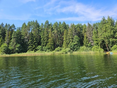 - Это вторая линия. Есть спуски к потрясающему озеру, но большая часть берега - это пирсы участков первой линии, хозяева которых не всегда рады туристам и рыбакам. Но место для рыбалки с удочкой и чтобы искупаться в принципе можно найти. Для более серьезного улова нужна лодка. Но это не вина хозяев, т.к. и цена на первой линии гораздо дороже.