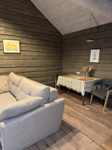 Просторное двухуровневое шале, погружающее вас в уютную и расслабляющую атмосферу, где по-домашнему тепло и уютно. Внутренняя лестница ведет вас под крышу, где находится спальное место. Подходит для размещения 2 человек.