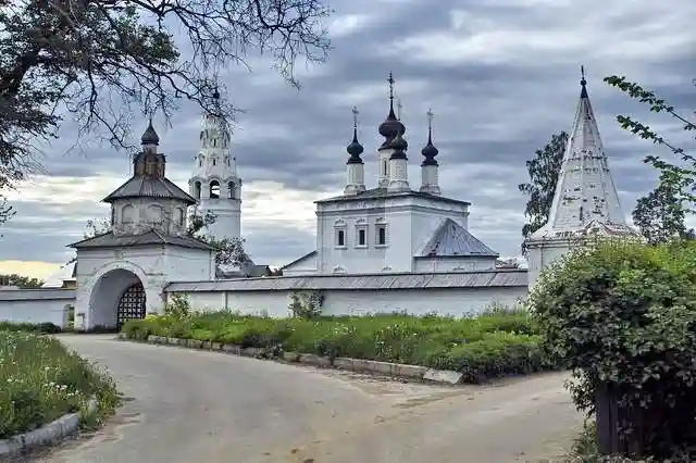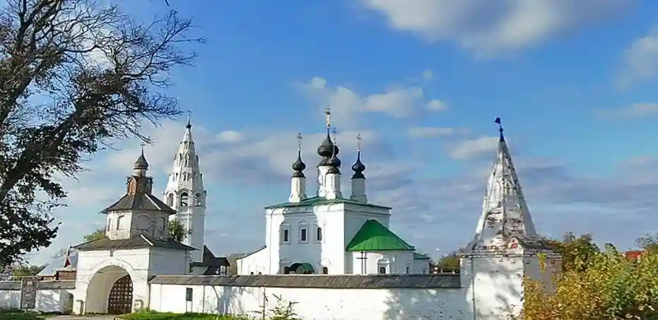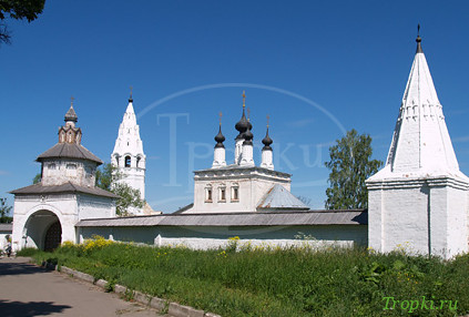 Александровский женский монастырь — расположен на левом берегу реки Каменка в Суздале, по преданию, был основан в 1240 году Александром Невским. Древние памятники монастыря до наших дней не сохранились. Церковь Вознесения Господня с колокольней построена в 1695 году на средства царицы Натальи Кирилловны, матери Петра I.