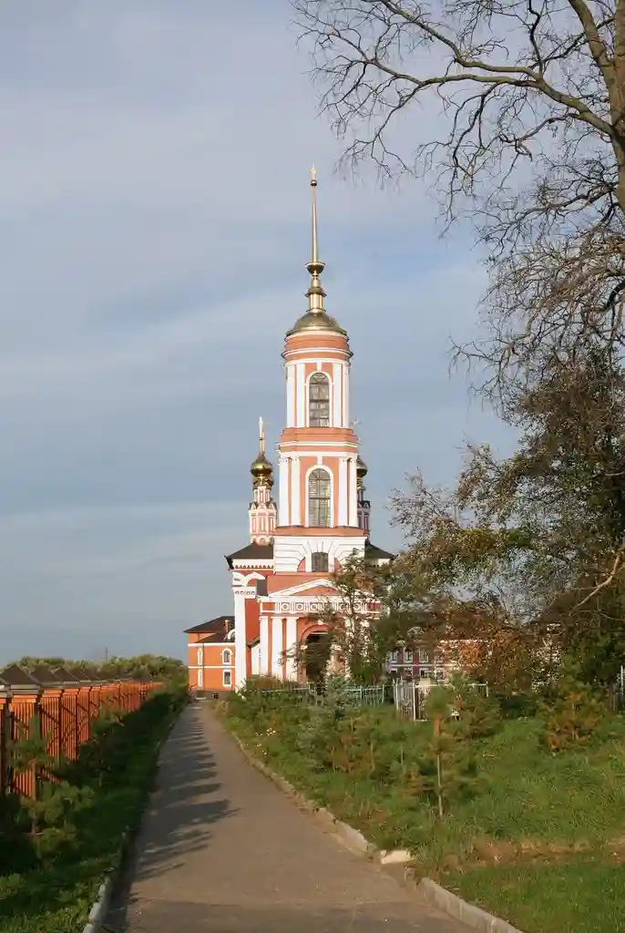 Церковь Михаила Архангела - это «летний» пятиглавый храм с колокольней. В основании церкви лежит достаточно высокий четверик с двумя ярусами окон, крыша четырехскатная, храм венчает пять оккуратных главок куполов. С запада к церкви пристроена трапезная, которая соединяет церковь с колокольней. Колокольня выполнена в стиле классицизм и очень похожа по декору и композиции на Преподобенскую колокольню.