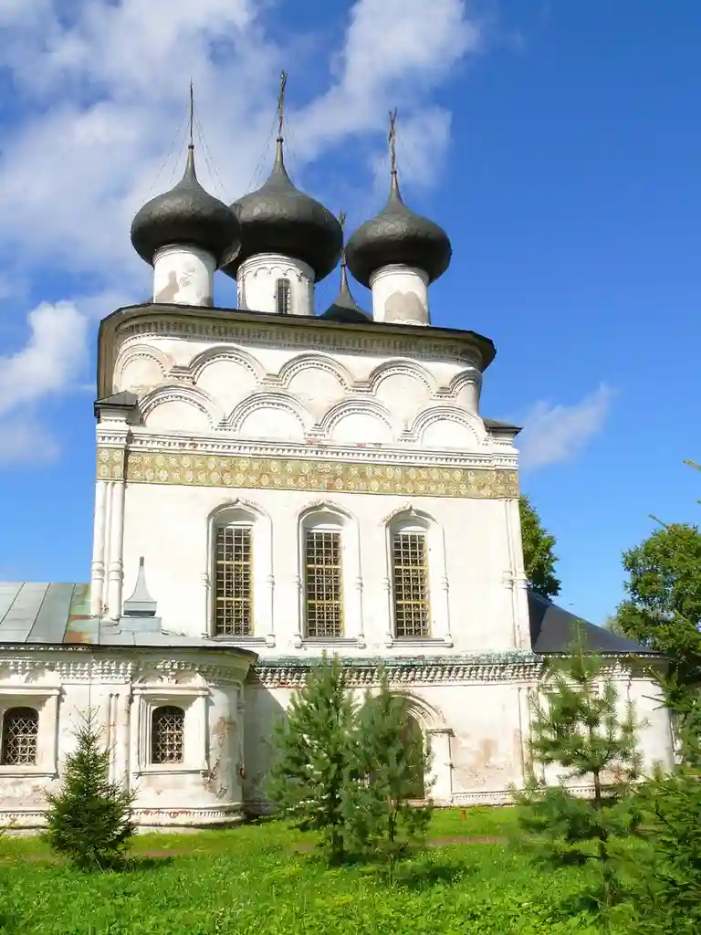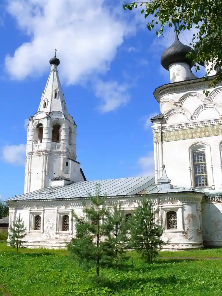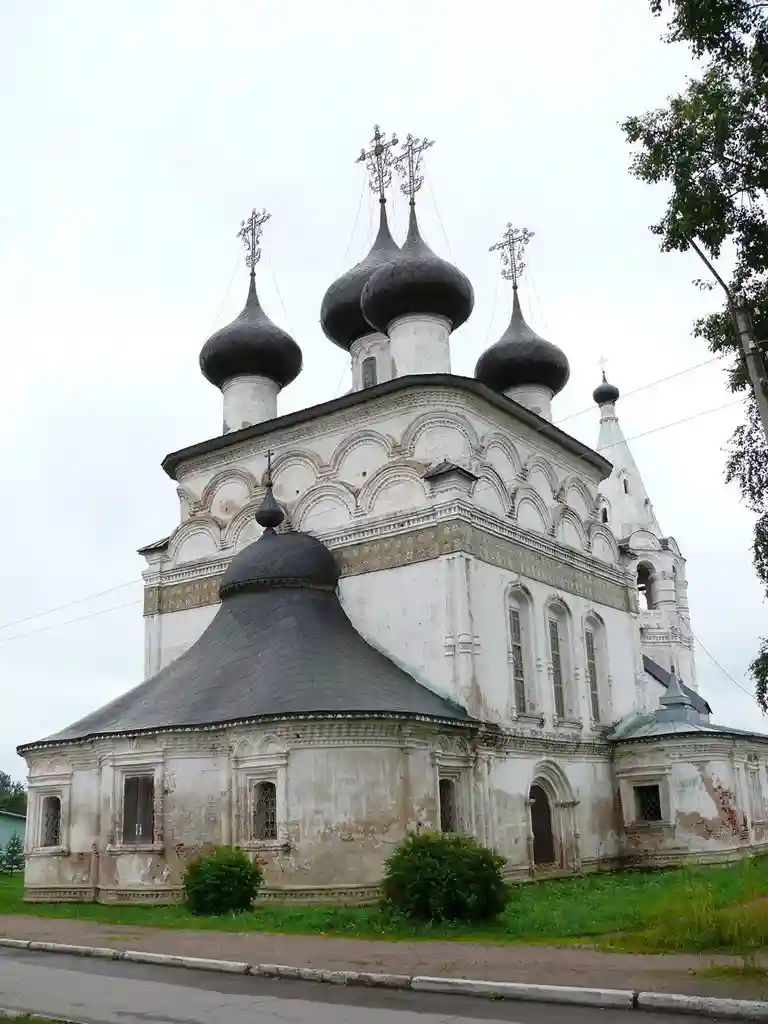 Здание храма представляет собой двусветный четверик, увенчанный двумя рядами декоративных кокошников и пятью луковичными главками, с трёхчастным алтарём, двухпридельной трапезной (примыкает с запада) и трёхъярусной шатровой колокольней. В основании шатра — пояс расположенных в шахматном порядке кокошников, и двойной фриз из изразцов, сам шатёр пронизан рядами декорированных отверстий для выпуска звуковой волны и предохранения шатра от трещин. На колокольне было шесть колоколов. Кресты кованые, ажурные, на нижней перекладине центрального креста можно рассмотреть год установки — 1783 год. На четырёхскатной кровле — пять барабанов с луковичными главами, центральный барабан — световой, остальные — ложные. Низкий трехапсидный алтарь с высокой барочной кровлей колоколообразной формы увенчан маленькой главкой.