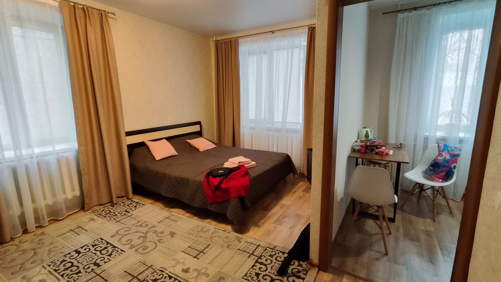 Квартира предусмотрена для 4 человек (кровать двуспальная и диван раскладной). Есть все необходимое для проживания. Квартира в самом центре города.