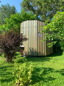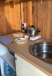 - Впечатление небольшого дачного участка и наставленными домами для проживания в эко концепции. Участок расположен рядом с дорогой в жилом поселке. Шум от дороги присутствует. Минус: общая маленькая кухня, общий душ, общая микро столовая, микро холодильник, микро электроплитка - это все для всех жильцов. Особое впечатление оставил санузел в доме в виде биотуалета - ночной писсуар и умывальник с бутылочной заливкой воды в ёмкость перед использованием! Извините за такой ценник, надо искать более продвинутое техническое решение и если подвести к домам нормальные коммуникации душ, нормальный туалет не возможно - снижать цену!