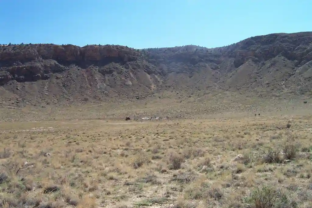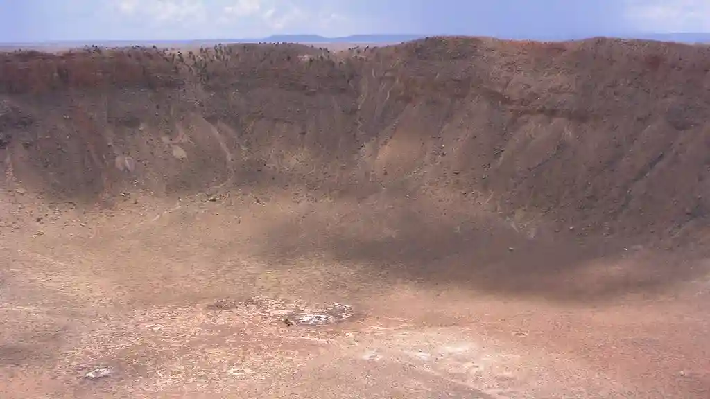 Кратер возник около 50 тысяч лет назад после падения 50-метрового метеорита, весившего 300 тысяч тонн и летевшего со скоростью 45-60 тысяч км/ч. Взрыв от падения был в три раза мощнее взрыва Тунгусского метеорита и был аналогичен по мощности взрыву 150 миллионов тонн тринитротолуола или 8000 атомных бомб, аналогичных сброшенной на Хиросиму. Внутри и вокруг Аризонского кратера найдены осколки метеоритного никелистого железа.