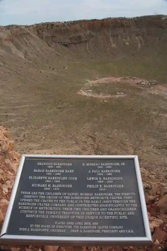 Метеоритный кратер в штате Аризона, часто именуемый в честь своего первого исследователя кратером Бэрринджера, отнюдь не является самым крупным на Земле. В Антарктике на Земле Уилкса под километровой толщиной льда в 1962 году обнаружен метеоритный кратер диаметром около 500 километров. В Канаде на побережье Гудзонова залива есть кратер диаметром 443 километра. Однако, в отличие от крупнейших, чей диаметр измеряется сотнями километров, Аризонский кратер единственный сохранил свой почти первозданный вид. Как сообщается в официальном буклете музея, «хотя на Земле есть более масштабные следы ударов, метеоритное происхождение этого кратера было доказано первым, и он лучше всех сохранил свой первозданный облик».