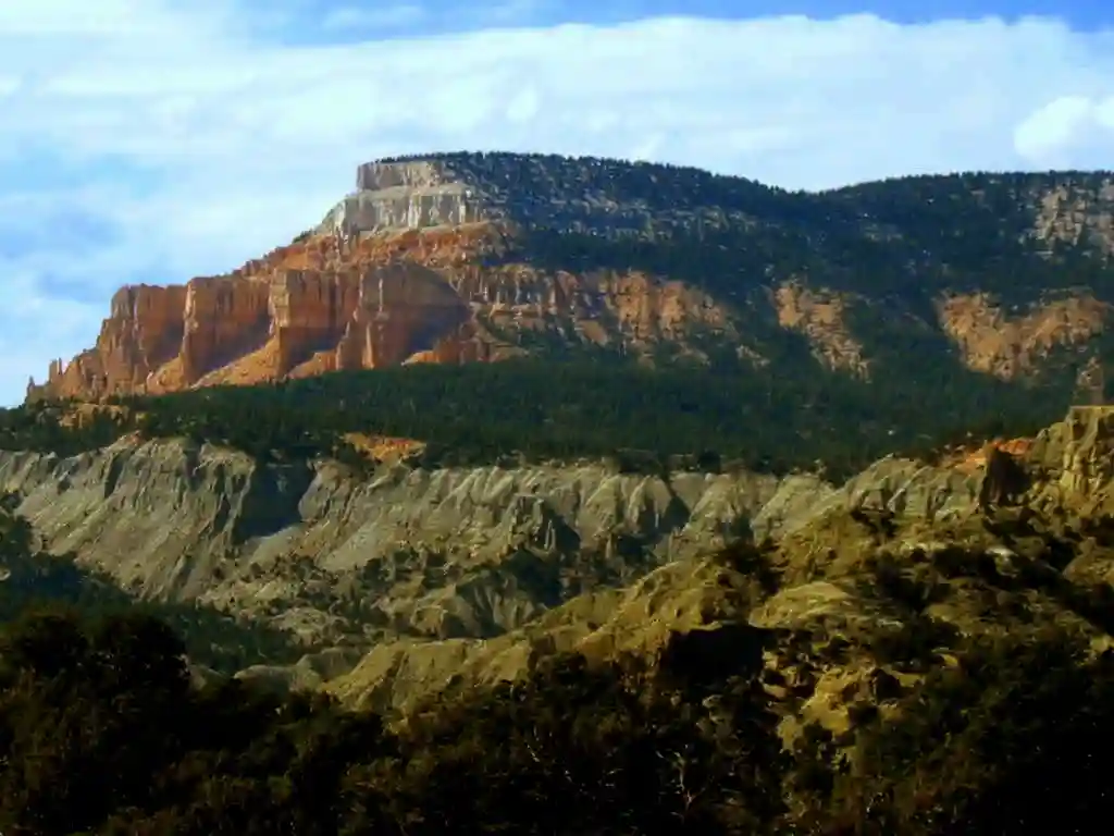 - Высокие плато Юты — наиболее высокий район плато Колорадо, расположен к западу от района Каньонлендс. Высота от 2750 до 3350 м. Плато разделены широкими долинами с плоскими днищами. На юге плато находятся три крупных уступа, обращённые в сторону Большого каньона. Сильная денудация послужила причиной образования вершин с живописными формами, которые вошли в состав национального парка Брайс-Каньон.