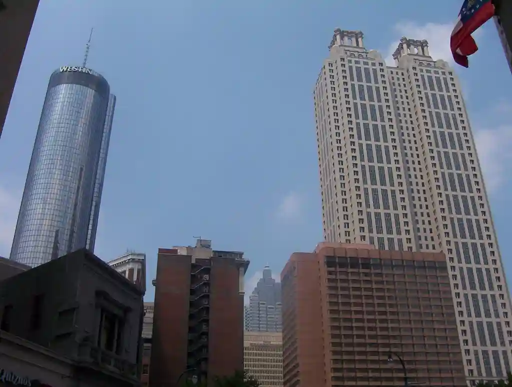В Атланте присутствует большое количество небоскрёбов и высотных зданий в стиле модерн и постмодерн. Самое высокое здание в Атланте — Бэнк оф Америка Плаза — высотой 312 м. Это не только самое высокое здание города, но также штата и вообще Юга США с 1992 года по настоящее время; 11-е по высоте в США (самое высокое здание в США, исключая Нью-Йорк и Чикаго); 77-е по высоте в мире.