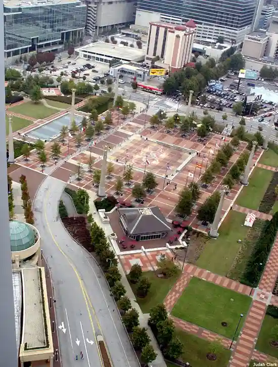 Самый известный архитектор Атланты[источник не указан 217 дней] — Джон Портмен[en]. Здание отеля Hyatt Regency, построенное в 1967 году, своим атриумом производит огромное впечатление на всех постояльцев. Выпускник Архитектурного колледжа Технологического института Джорджии, Портмен кардинально изменил облик центра города. Его проекты — центр торговли AmericasMart, Пичтри-Центр, Отель Вестин-Питчтри-Плаза и СанТраст-Плаза.