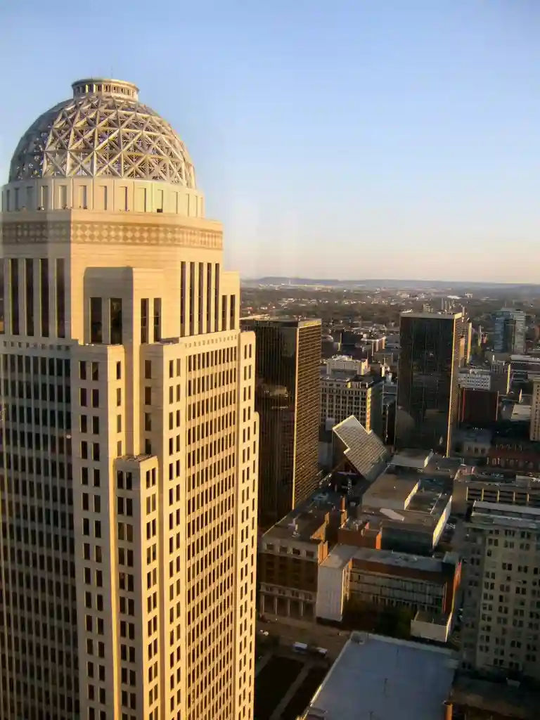 Деловой центр города Луисвилл находится непосредственно к югу от реки Огайо и к юго-востоку от водопадов Огайо. Основные улицы расходятся от центра города во все стороны. Аэропорт находится примерно в 10 км южнее центра. Промышленные районы расположены к югу и к востоку от аэропорта, большинство жилых районов находится на юго-западе, юге и востоке от центра города. Пейзаж города должен вскоре поменяться из-за строительства небоскрёба «Мьюзиум Плаза» (Museum Plaza) высотой в 62 этажа и стадиона на 22 000 мест на набережной.