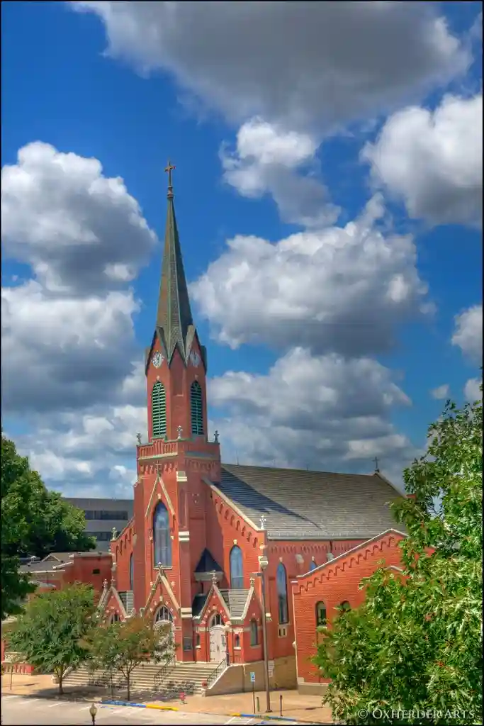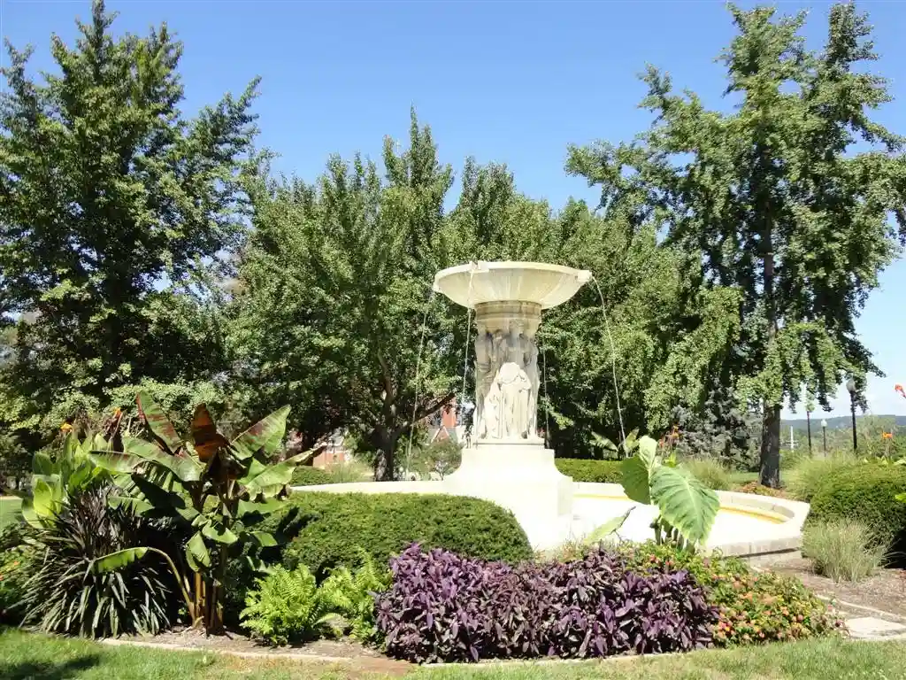 Город построен на реке Миссури в районе холмистого плато Озарк.